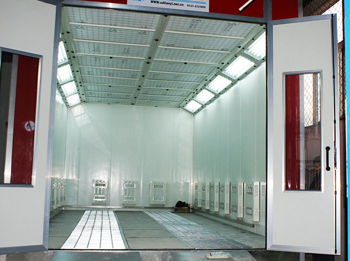 5、在烤漆房只能进行喷涂和烘烤工序,而且烤漆房房门只可在车辆进出时开启,开启房门时需要开动喷涂时的空气循环系统以产生正压,确保房外的灰尘不能进入房内;