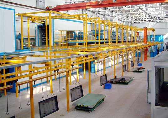 涂装流水线的七大组成部分主要包括:前处理设备、喷粉系统、喷漆设备、烘炉、热源系统、电控系统、悬挂输送链等。